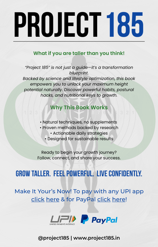 “Project 185” is not just a guide—it’s a transformation blueprint. Backed by science and lifestyle optimization, this book empowers you to unlock your maximum height potential naturally. Discover powerful habits, postural hacks, and nutritional keys to growth.